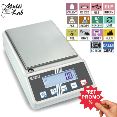 • Balanta universala Kern 572-57 este prevazuta cu functii tipice de laborator, cum ar fi, de exemplu, funcția de rețetă, determinarea procentului, combinate cu nivelul ridicat de precizie.