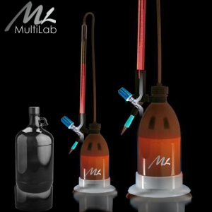 • Setul de biurete Schilling este alcătuit dintr-o biuretă asemănătoare cu una automată din sticlă și o sticlă rezervor din polietilenă cu un suport stabilizator.