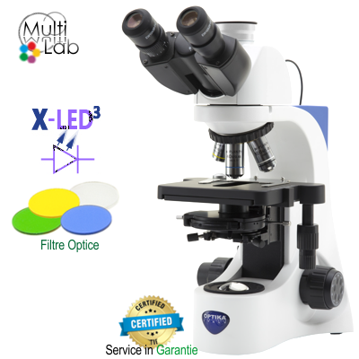 Microscopul este livrat cu certificat de garanție, certificat de conformitate, manual de utilizare în limba engleză, husă de protecție și soluție pentru curățarea componentelor optice.