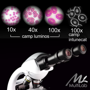 • Iluminator / lumina transmisă: tip Koehler fix, X-LED³ cu LED alb de 3,6 W (6300K) cu control al luminozității (3.6 W comparabil cu un bec halogen de 50 W)