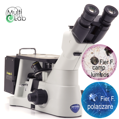 • Epi-iluminare și filtre polarizante: Halogen 12 V/50 W cu control al luminozității; cu diafragme de deschidere și de câmp (centrabile); temperatura culorii de 3500 K; cu polarizator și analizor