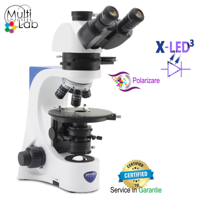 • Mod de observare: câmp luminos, lumină polarizată transmisă și conoscopie