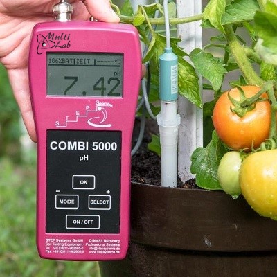 pH 5000 este un pH-metru conceput în special pentru măsurători directe ale pH-ului în soluri, apă și alte medii de cultură. Carcasa robustă este bine protejată împotriva prafului și a umidității, potrivită pentru utilizarea pe teren.