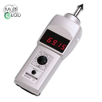 Tahometrul DT-107A este un dispozitiv portabil cu display LED pentru măsurarea precisă prin contact a turației motoarelor sau a arborilor, precum și a vitezei și lungimii suprafețelor, de exemplu, a curelelor și a benzilor transportoare.