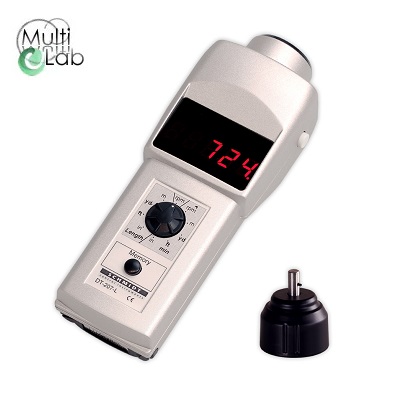 Tahometrul DT-207L este un dispozitiv portabil cu display LED pentru măsurarea precisă prin contact sau fără contact a turației motoarelor sau a arborilor, precum și a vitezei și lungimii suprafețelor, de exemplu, a curelelor și a benzilor transportoare.