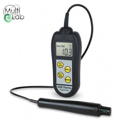 Termohigrometrul ETI 6500 măsoară atât umiditatea relativă, cât și temperatura aerului. Este prevăzut cu un ecran LCD clar personalizat cu indicarea °C, % u.r., max/min, hold și punct de rouă. O funcție de oprire automată oprește instrumentul după 10 minute de inactivitate, iar cele patru butoane de pe aparat sunt ușor de utilizat și permit utilizatorului să selecteze funcțiile pornit/oprit, °C/°F, max/min și mod. Termohigrometrul este furnizat cu o sondă externă de măsurare ce se conectează la instrument prin cablul PVC integrat.